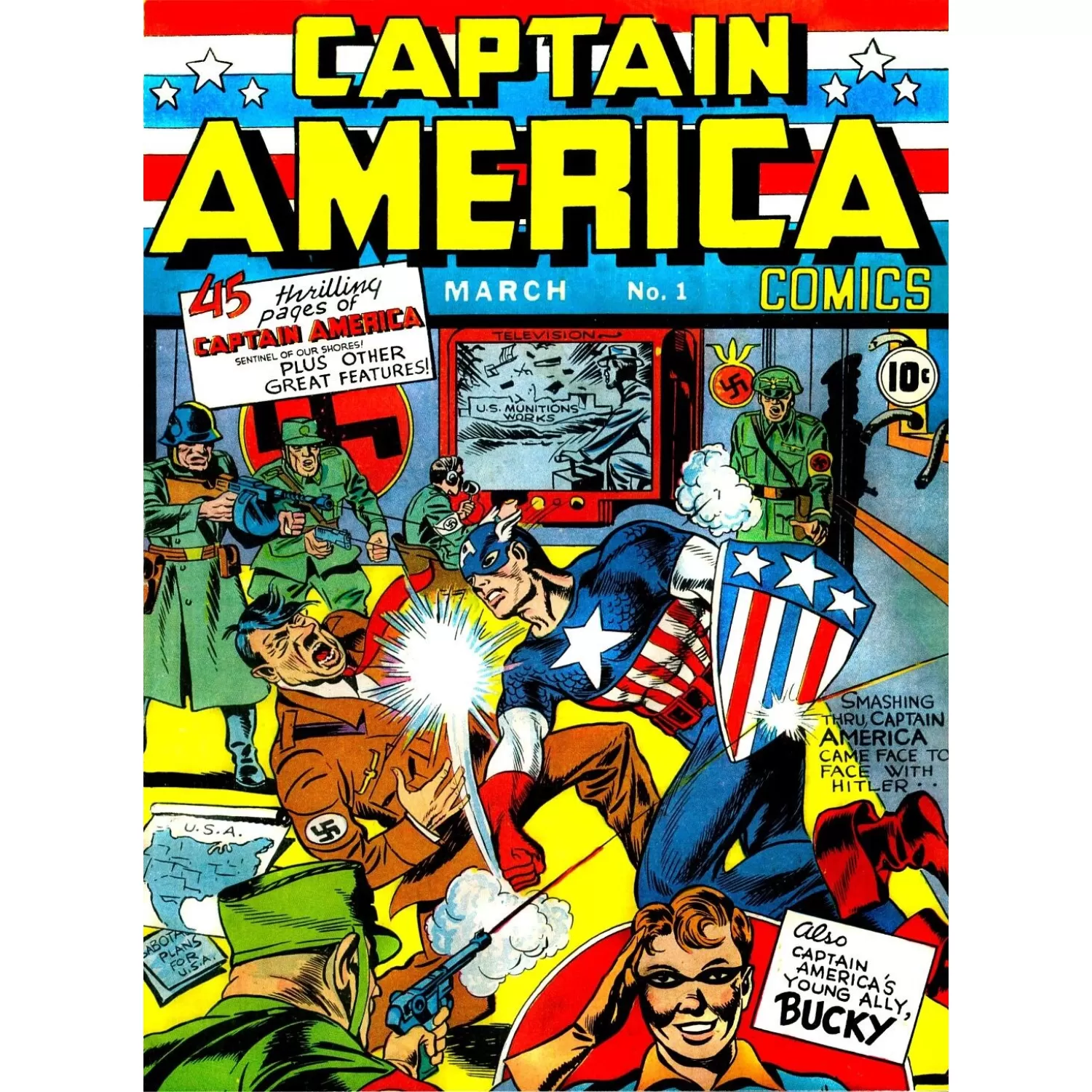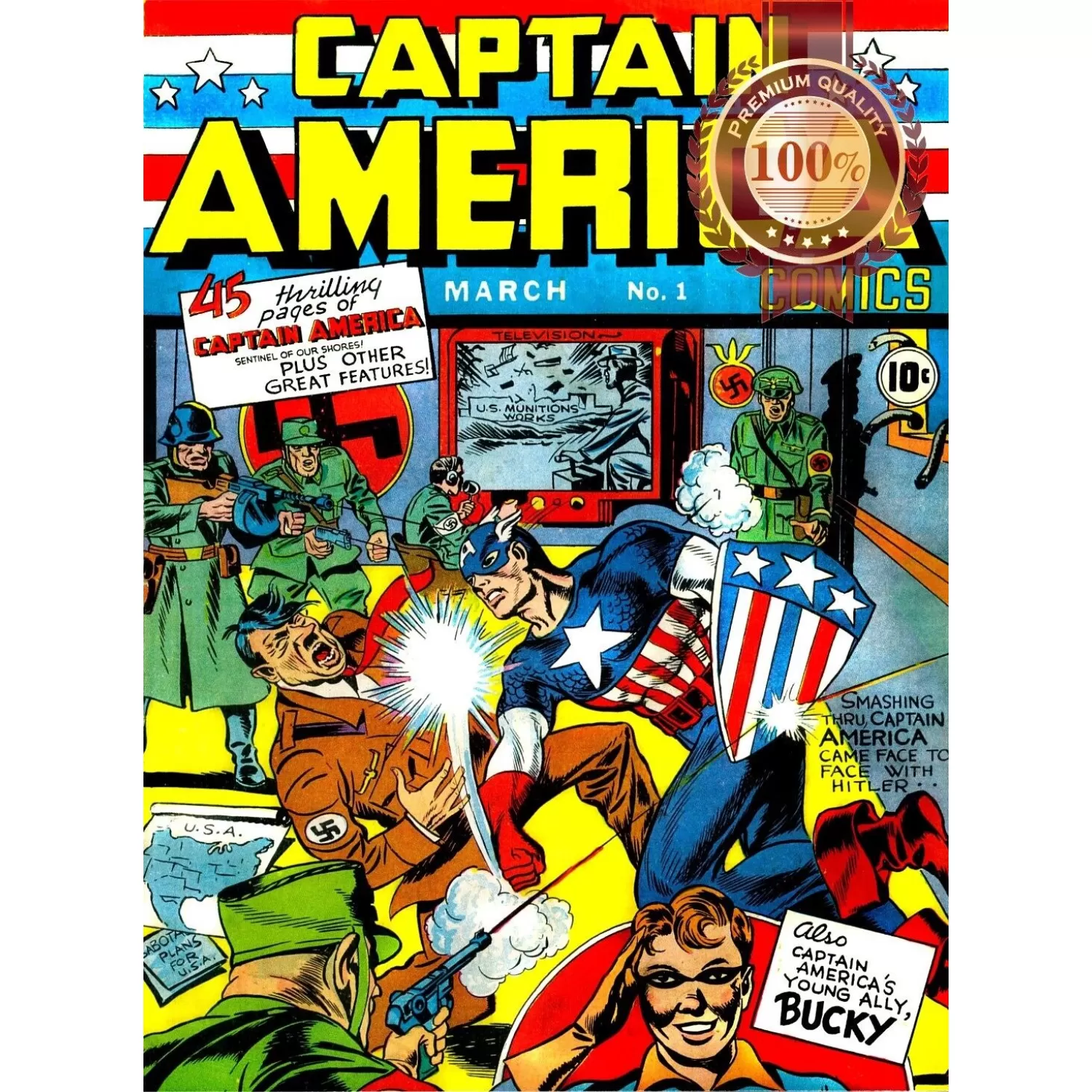 - CAPTAIN AMERICA RETRO 1941 MARCH No.1 HITLER COMIC ART PRINT PREMIUM POSTER