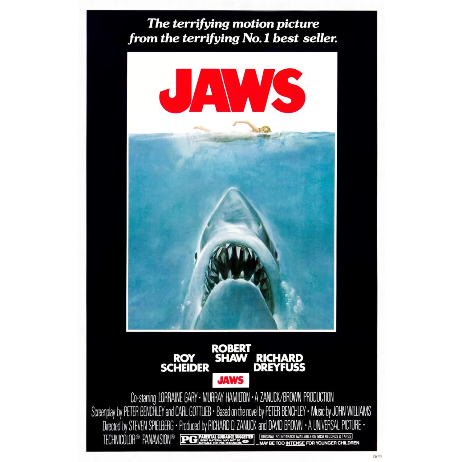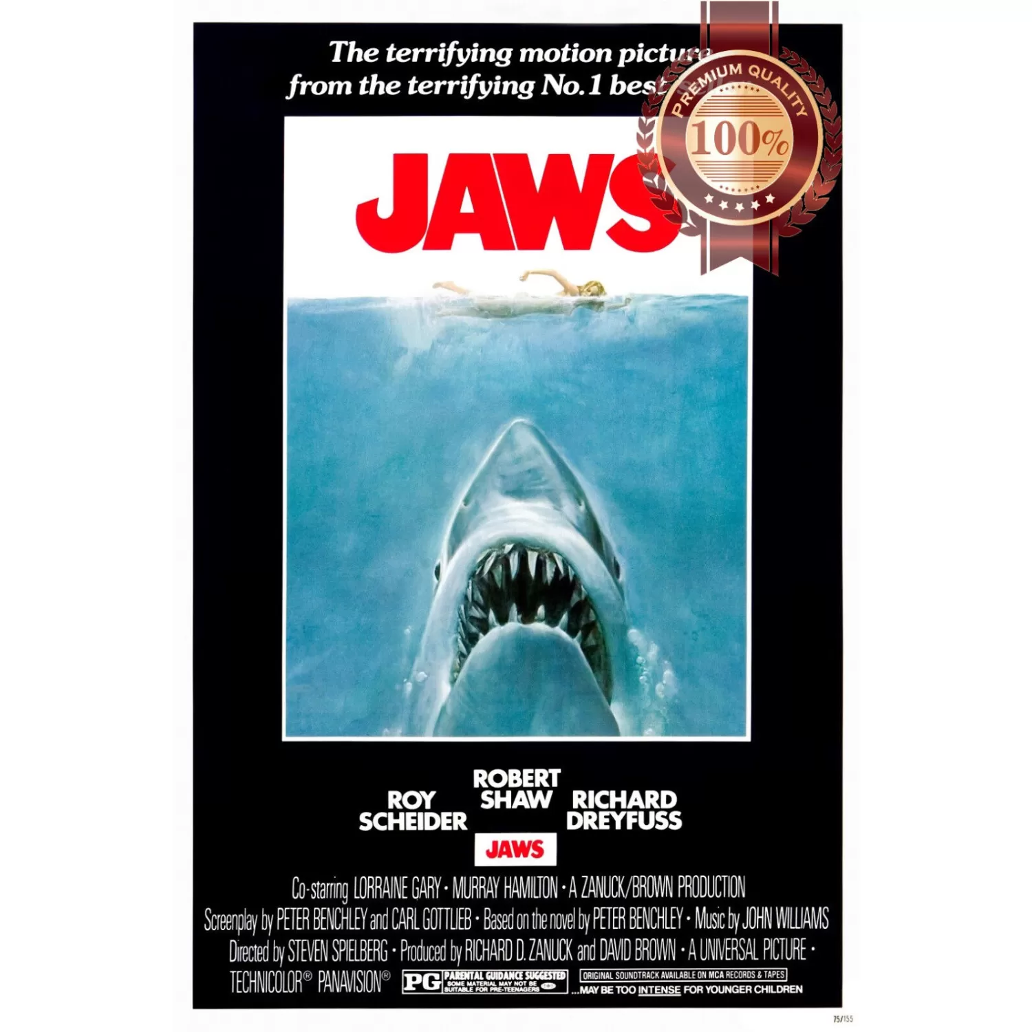 - JAWS 1 OFFICIAL ORIGINAL 1975 FIRST FILM MOVIE CINEMA PRINT PREMIUM POSTER