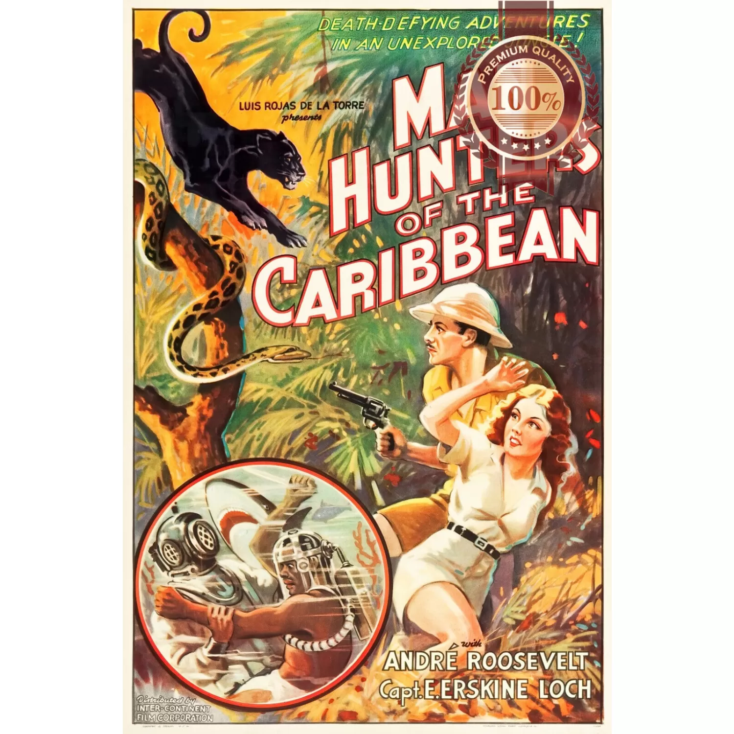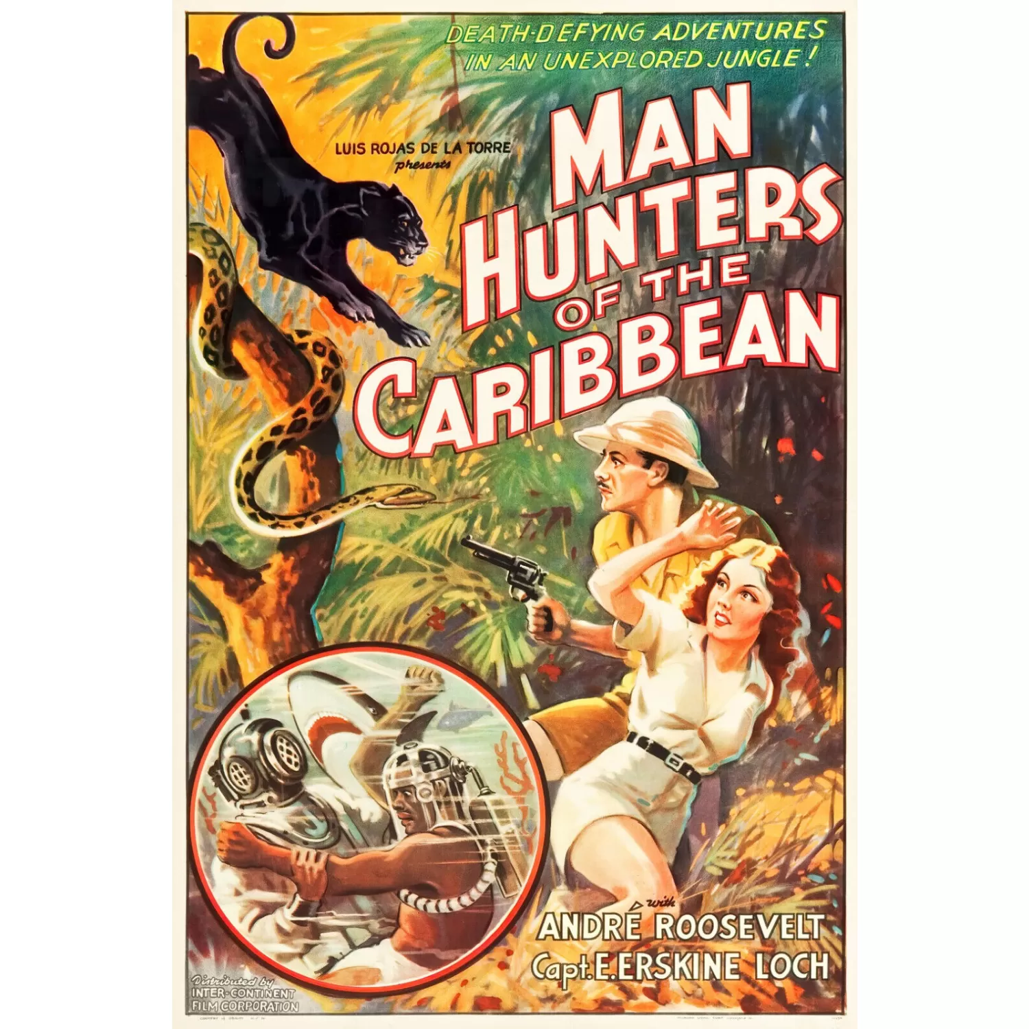 - MAN HUNTERS OF THE CARIBBEAN 1936 30s ORIGINAL CINEMA MOVIE PRINT PREMIUM POSTER