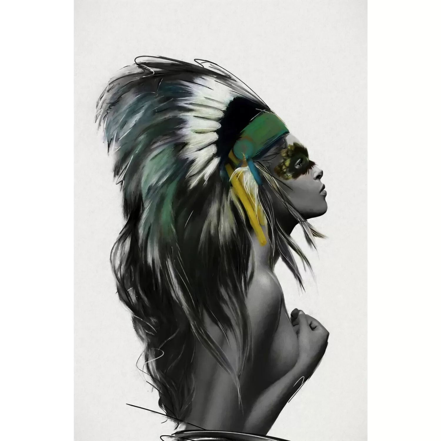 - NATIVE AMERICAN HEADDRESS FEMALE ORIGINAL ARTWORK ART PRINT PREMIUM POSTER