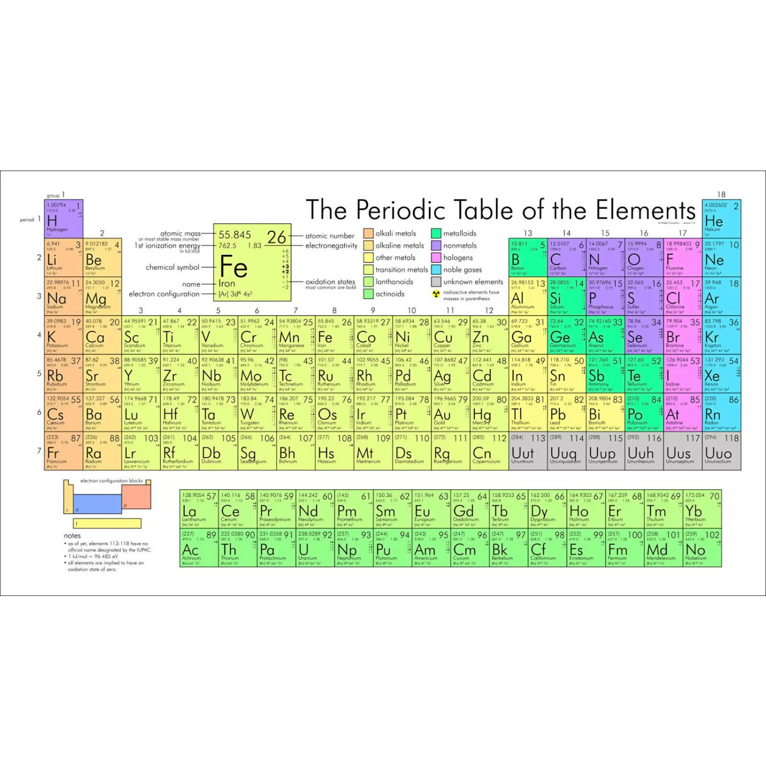 Beautiful high resolution poster of the PERIODIC TABLE OF ELEMENTS